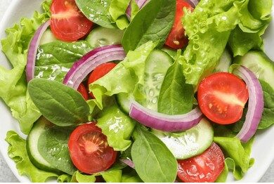 A refreshing mix of crisp lettuce, fresh veggies, and light dressing.