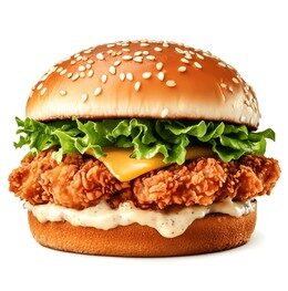 Crispy fried chicken fillet, fresh lettuce, tomatoes, onions, pickles, and signature zinger sauce, served in a soft bun.